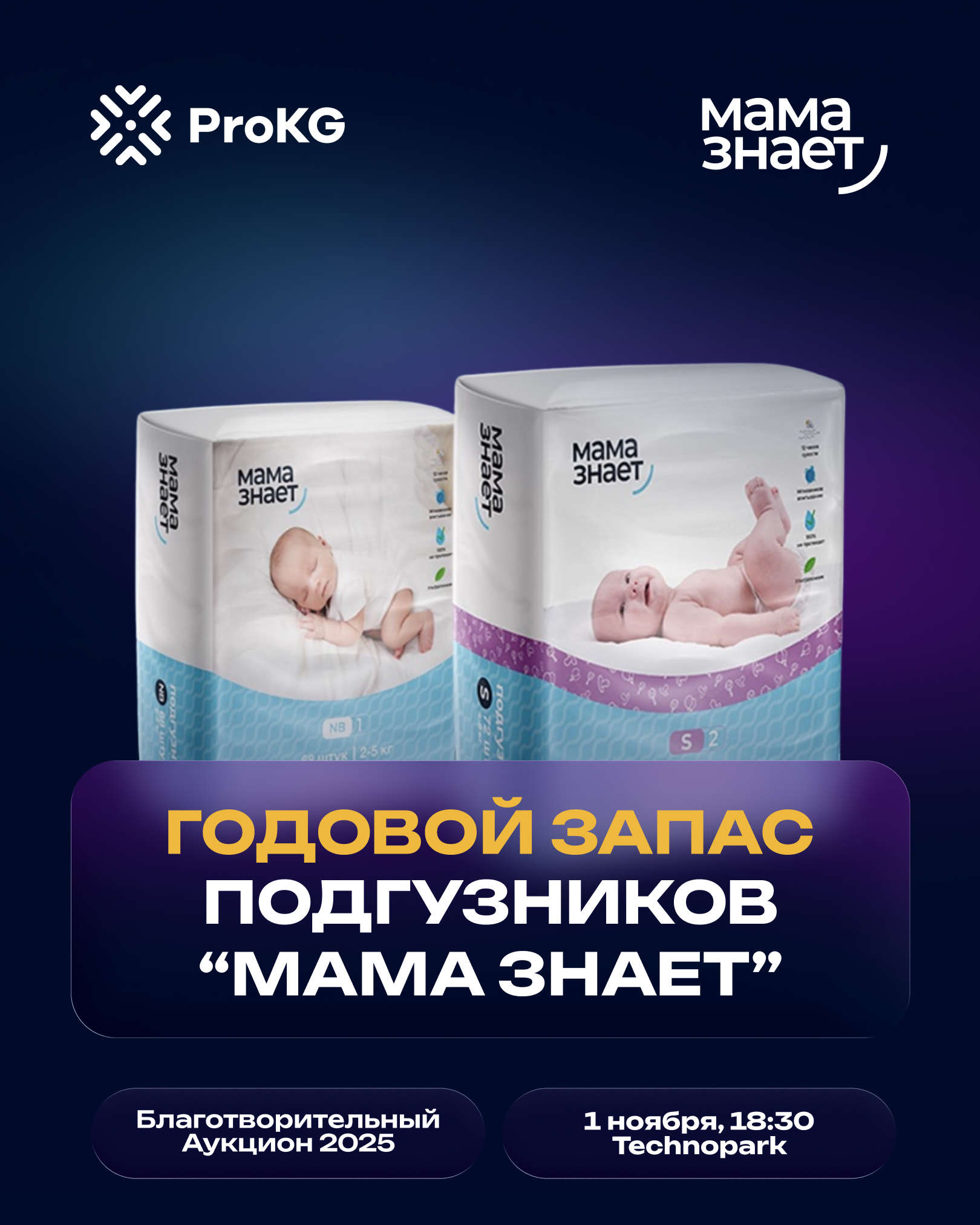 На Благотворительном Аукционе ProKG представлен практичный и важный лот — годовой запас подгузников «Мама Знает», бренда №1 в Кыргызстане. Эти подгузники созданы мамами для мам, чтобы забота о малыше была комфортной и надежной.